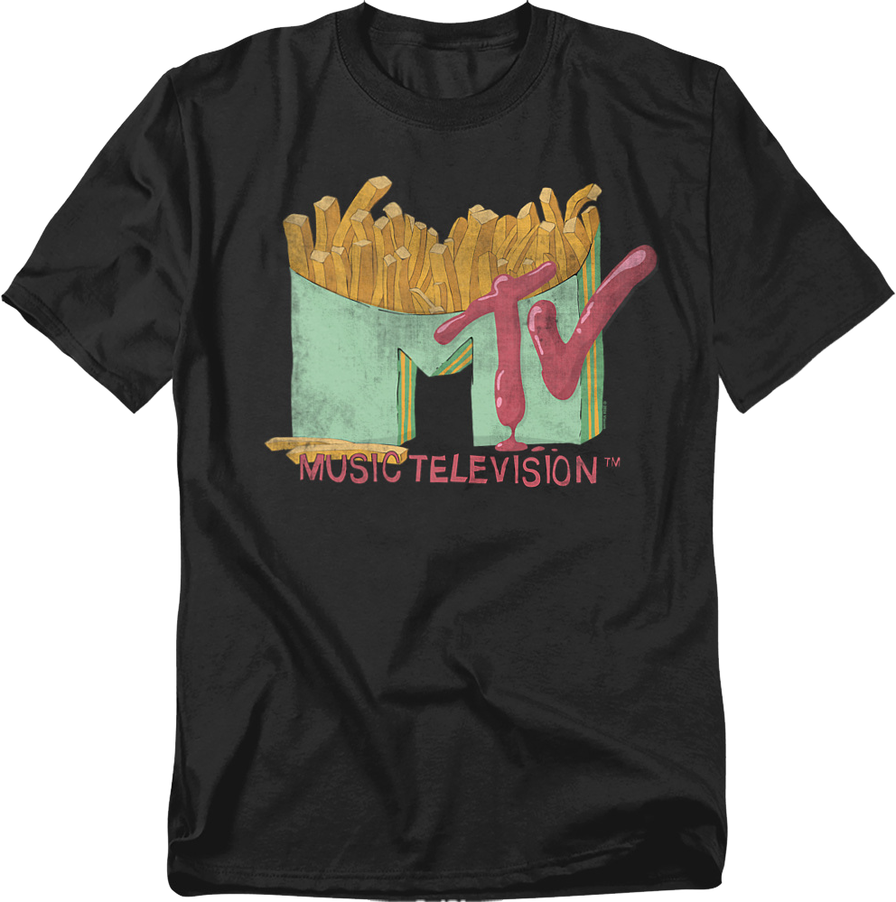 MTV launched on August 1st, 1981 with a logo designed by Manhattan Design's Patty Rogoff and Frank Olinsky under the creative direction of Fred Seibert. The block letter "M" was sketched by Rogoff, and the scribbled word "TV" was spraypainted by Olinksky. The logo is instantly recognizable, even when it's holding French fries. Let everyone know you are a fan of the channel that started a music revolution when you wear this French Fries Logo MTV T-Shirt!