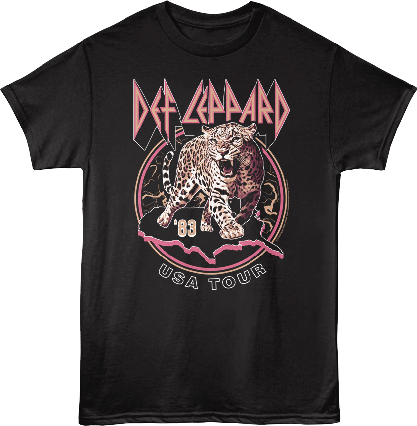 Everyone will instantly know you are a fan of the legendary rock band when you wear this Front & Back '83 USA Tour Def Leppard T-Shirt!