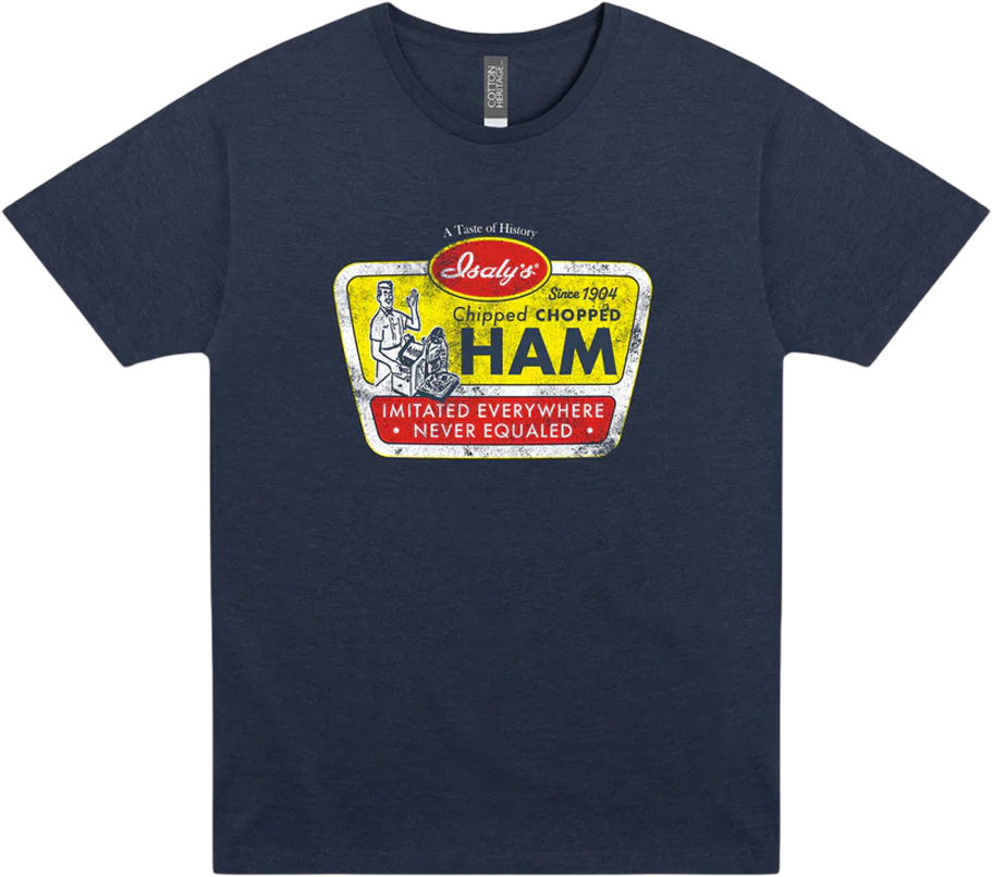 Everyone will know you are a fan of the delicious Pittsburgh sandwich when you wear this Front & Back Chipped Ham Isaly's T-Shirt!