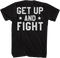 The front of this Muhammad Ali t-shirt shows the legendary boxer standing over Sonny Liston. The back of the shirt reads Get Up And Fight.