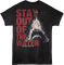 For any fan of Steven Spielberg's terrifying 1975 classic, this Front & Back Stay Out Of The Water Jaws T-Shirt is a must have!