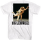The front of this Big Lebowski t-shirt features the classic quote "The Dude Abides." The back of the shirt features an image of The Dude's bowling dream sequence with Maude Lebowski.