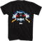 The front of this Back To The Future t-shirt features Doc Brown's quote "Roads? Where we're going we don't need roads." The back of the shirt shows Doc Brown's time traveling DeLorean moving at 88 miles per hour and leaving fire tracks behind.