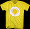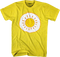 This Care Bears t-shirt shows the smiling sun badge that appears on Funshine Bear's belly. Using this belly badge, Funshine Bear can help by lighting up the darkest night or shine a beacon for all to see.