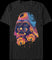 This Star Wars t-shirt features a colorful painting of the Galactic Empire, with dripping paint. The painting shows Darth Vader's helmet, which includes the Death Star and Stormtrooper helmets.