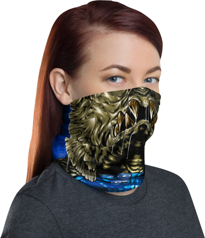 This 80sTees.com exclusive Monster Squad neck gaiter is designed to look like Gillman, the scaly creature that stole Twinkies and teamed with Count Dracula, the Wolfman and the Mummy to secure an ancient amulet that would allow them to conquer the world.