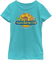 This girls youth Land Before Time shirt shows Spike, Petrie, Littlefoot, Cera, and Ducky in the logo for the 1988 animated blockbuster.