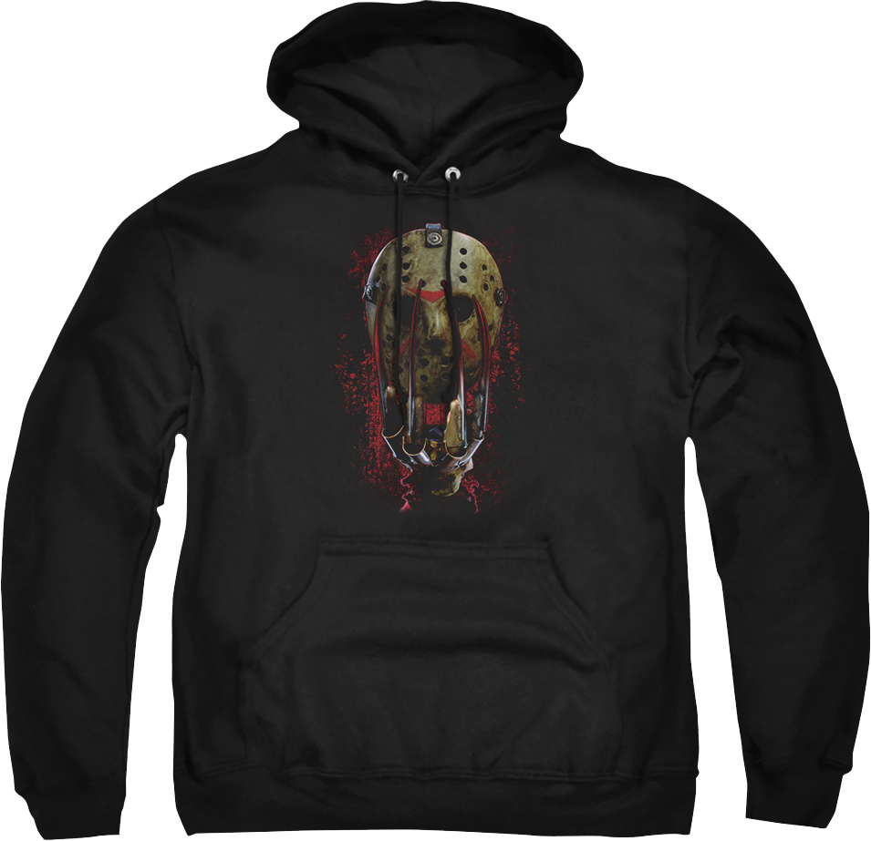 Show that you are a fan of the ultimate fright to the death with this Glove And Mask Freddy vs. Jason Hoodie!