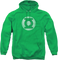 In brightest day, in blackest night, no evil shall escape your sight when you wear this Green Lantern Hoodie! The hoodie features a distressed print of the lantern logo of the Green Lantern Corps, as seen on Corps members' uniforms.