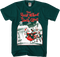 This Green Poster The Year Without A Santa Claus T-Shirt features the poster art for the 1974 Christmas special. It shows Santa in his sleigh being pulled by a reindeer, passing by the sign for the North Pole. The Snow Miser and the Heat Miser are shown battling in the background. Despite a few hitches, "yearly, newly, faithfully and truly, somehow Santa Claus always comes."