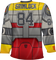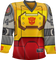 This jersey is designed to look just like Grimlock in robot mode. The jersey includes Grimlock's traditional red, gray and yellow colors. The back of the jersey shows the name Grimlock. The jersey is given the number 84 because the original Transformers animated series premiered in 1984. The sleeves show the Dinobots team logo, a mechanical Tyrannosaurus, just like Grimlock. The front of the jersey even includes a Transformers logo patch that looks like it has been sewn on to complete the look of an authentic hockey jersey!
