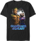 This Guardians Of The Galaxy t-shirt features a collage that shows Groot, Rocket Raccoon, and the Benatar ship.