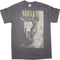 This Nirvana t-shirt shows band members Kurt Cobain, Dave Grohl and Krist Novoselic posing by a brick wall.