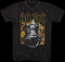 This AC/DC shirt shows Angus Young's guitar on a highway to hell with burning flames in the background.