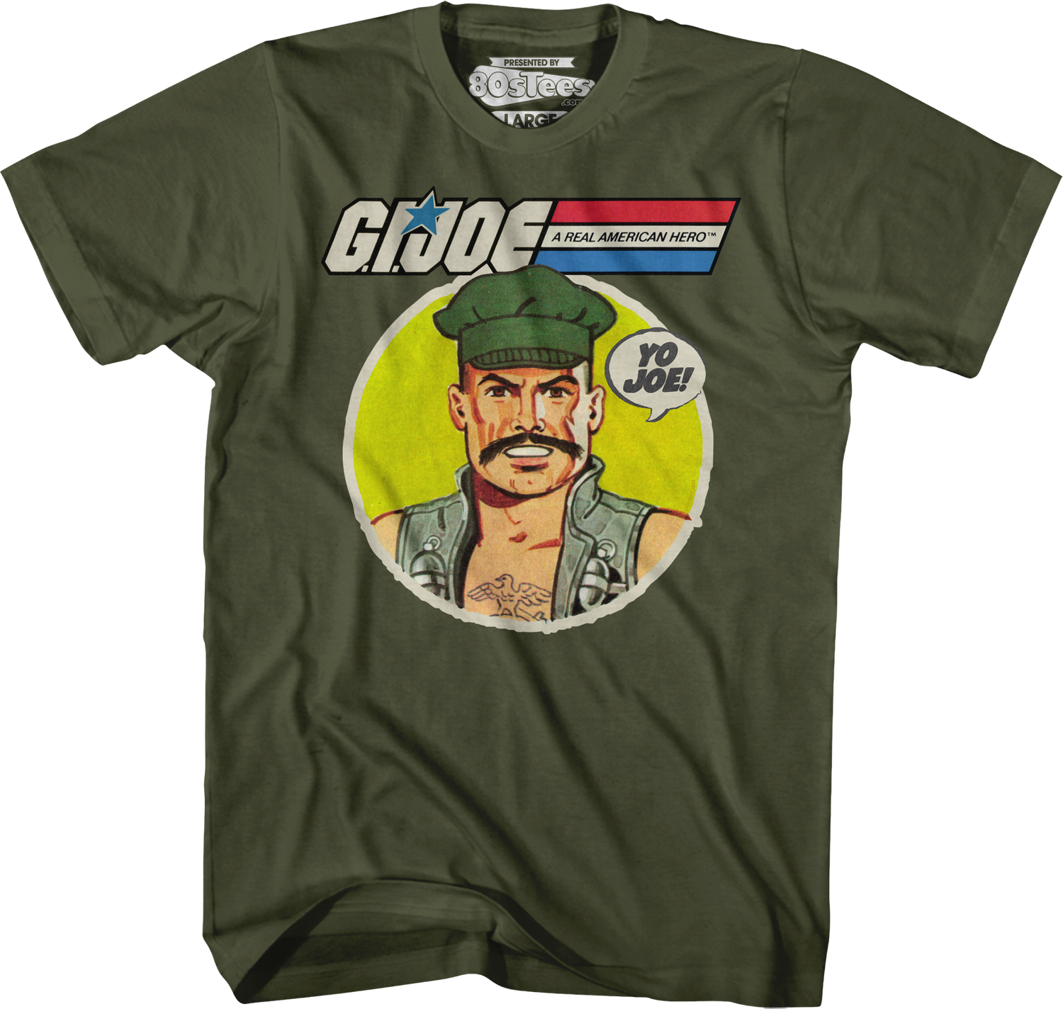 This 80sTees.com exclusive GI Joe t-shirt shows Gung Ho saying the GI Joe battle cry "Yo Joe!"