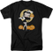 This Betty Boop t-shirt shows the "Queen of the Animated Screen" in a pumpkin patch with pumpkins carved into Jack-o'-Lanterns that look like Betty's friends Bimbo and Pudgy.