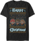 This Harry Potter t-shirt shows Ron Weasley, Harry Potter, and Hermione Granger in a design that looks like it was designed for an ugly Christmas sweater. The shirt reads Happy Christmas.