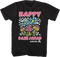 This Woodstock t-shirt shows flowers and mushrooms planted in a checkerboard design. The shirt reads Happy Daze Ahead.