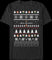 This Super Mario Bros. t-shirt features familiar images from the iconic video game mixed with Christmas shapes to create a design that looks like it came from an ugly Christmas sweater. The t-shirt shows Christmas bells, mushrooms, Fire Flowers, snowflakes, Christmas trees, a Power Star, a platform that shows Mario standing in between trees, and the message "Happy Holidays".