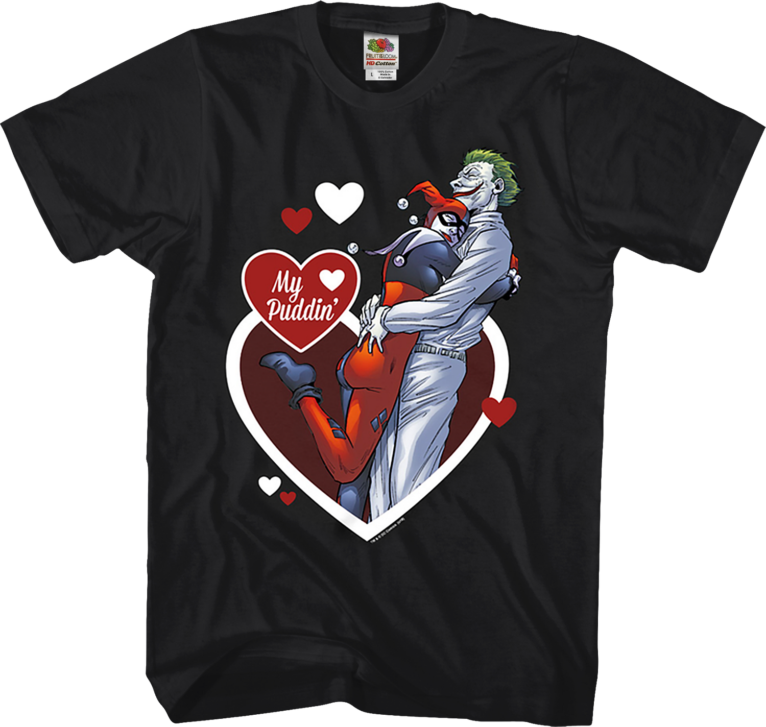 This Valentine's Day, show that you are a fan of the most dangerous couple in Gotham City with this Harley Quinn And The Joker My Puddin' DC Comics T-Shirt!