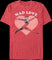 This Batman t-shirt shows Harley Quinn posing in front of a Valentine's Day heart. The shirt reads Mad Love.