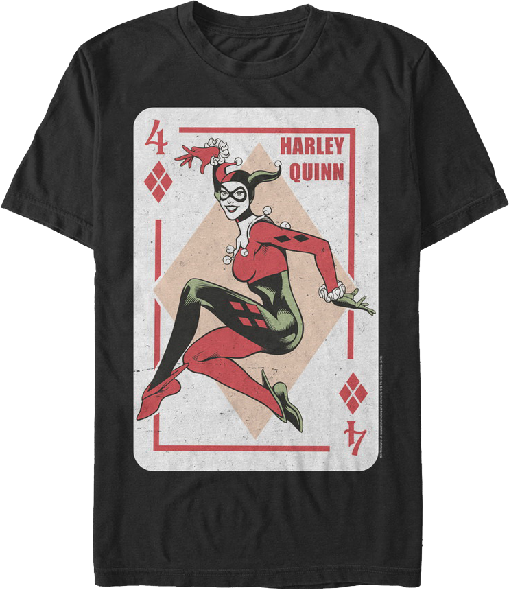 This Batman t-shirt shows Harley Quinn on a playing card.