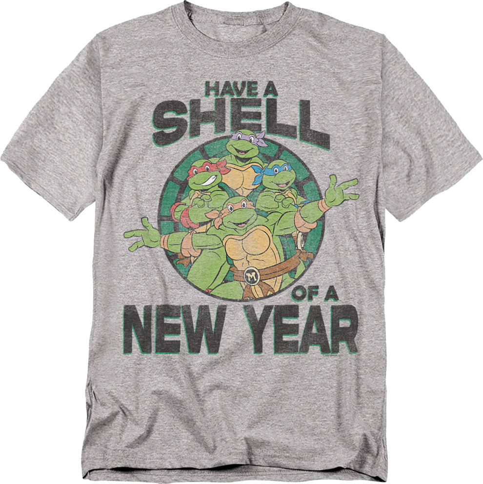 Everyone will immediately know you are a fan of the heroes in a half shell when you wear this Have A Shell Of A New Year Teenage Mutant Ninja Turtles T-Shirt!