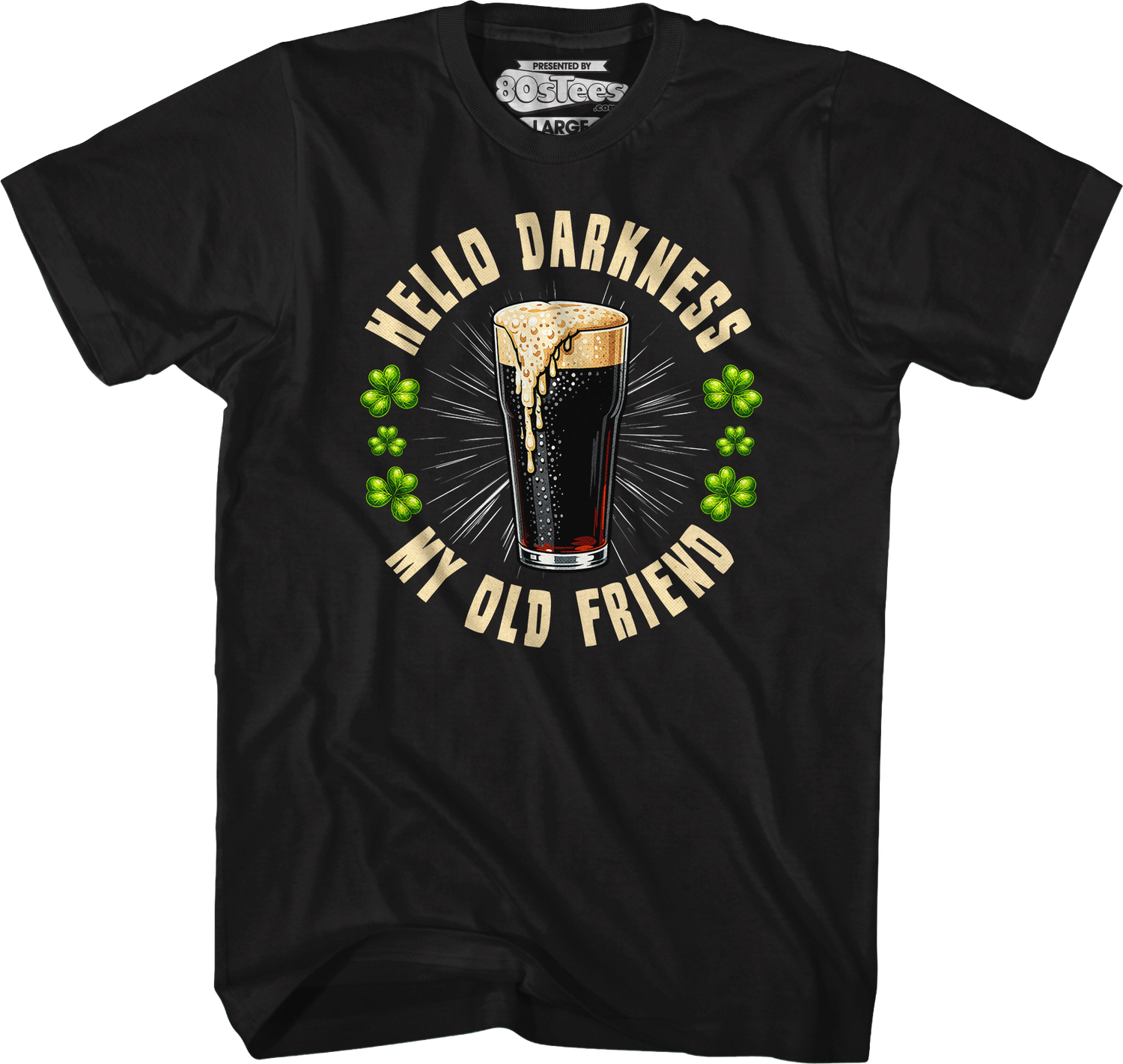 St. Patrick's Day is an Irish holiday is celebrated by drinking beer. To get into the true Irish spirit, many people choose to drink dark beers like Guinness, Beamish Irish Stout, Murphy's Irish Stout, and Sullivan's Black Marble Stout. Let everyone know you are ready to party hard and disturb the sound of silence with this 80sTees.com exclusive Hello Darkness My Old Friend T-Shirt!