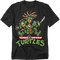 This Teenage Mutant Ninja Turtles t-shirt shows Donatello with his bo staff, Leonardo with his katana, Raphael with his twin sai, and Michelangelo with his dual nunchaku.