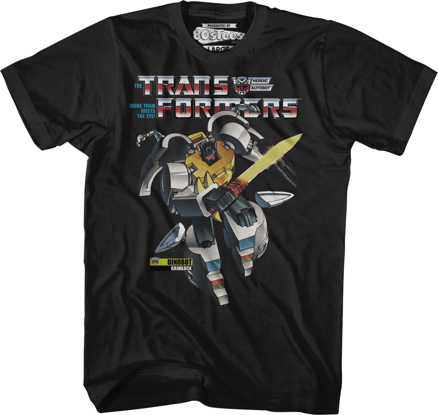 For any fan of the leader of the Dinobots, this 80sTees.com exclusive Heroic Dinobot Grimlock Transformers t-shirt is a must have!