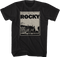 This Rocky t-shirt shows a black and white image of the Italian Stallion celebrating reaching the at top of the steps at the Philadelphia Museum of Art in Philadelphia. The movie's tagline "His whole life was a million-to-one shot" is shown along with the movie's logo.