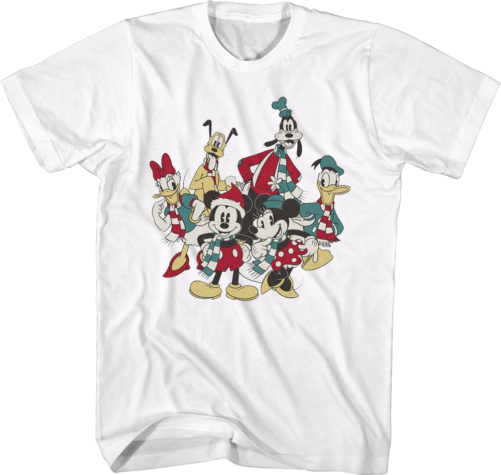 Mickey Mouse, Minnie Mouse, Daisy Duck, Donald Duck, Pluto, and Goofy are six classic Disney characters. They are friendly, faithful, silly, funny, and some of the greatest animated characters of all time. Let everyone know you are a fan when you wear this Holiday Group Photo Disney T-Shirt!