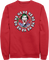 This Batman sweatshirt shows the Joker laughing in a candy-cane-striped circle.