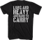 The front of this Rambo t-shirt shows John Rambo posing with his RPG-7 grenade launcher. The shirt reads How's It Hangin'? The back of the shirt reads Long And Heavy And Hard To Carry.