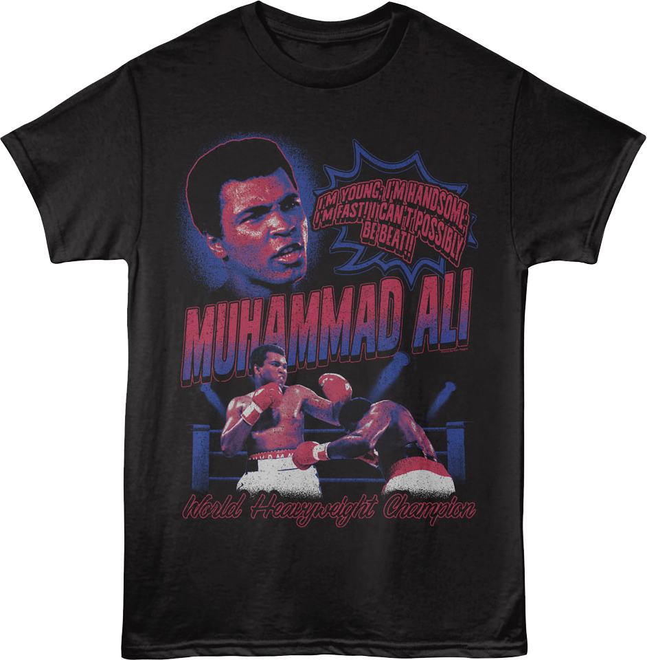 With 37 career knockouts to his credit, Muhammad Ali is one of the most celebrated professional boxers of all time. With a devastating and powerful punch, Ali picked up 56 career wins, and held 3 world heavyweight championships. Let everyone know you are a fan of the greatest of all time with this I Can't Possibly Be Beat Muhammad Ali T-Shirt!