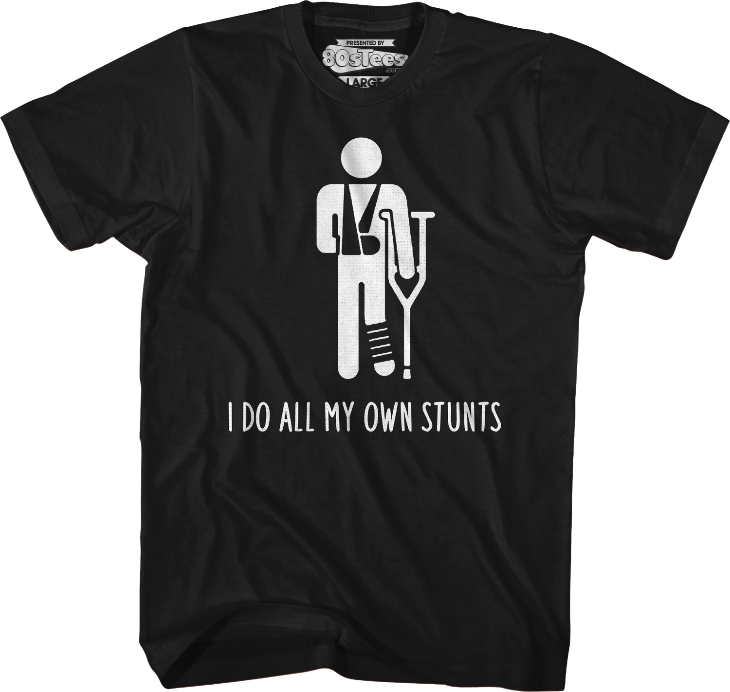 Let everyone know you are a natural born daredevil with this 80sTees.com exclusive I Do All My Own Stunts T-Shirt!