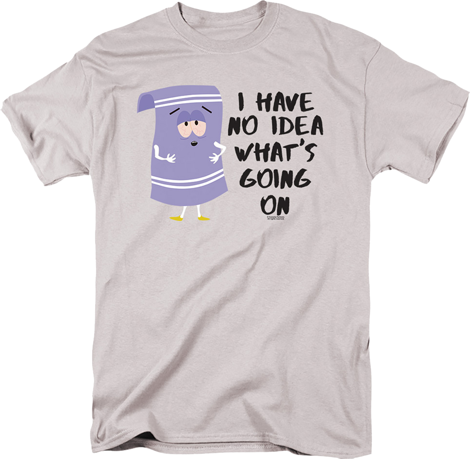 This South Park t-shirt shows Towelie saying "I have no idea what's going on."
