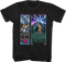 This Masters of the Universe t-shirt features a collage of images from the classic animated series. The images include He-Man raising his Power Sword in front of Castle Grayskull, Hover Robots, He-Man battling Skeletor, and the magical Trollan Orko.