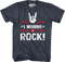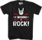 This 80sTees.com exclusive t-shirt shows a hand giving the sign of the horns hand gesture that is seen at every rock concert. The shirt reads I Wanna Rock!