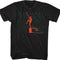 This Karate Kid t-shirt features a silhouette of Daniel LaRusso practicing the crane kick on a beach. The shirt includes Mr. Miyagi's quote, "If Do Right No Can Defense".