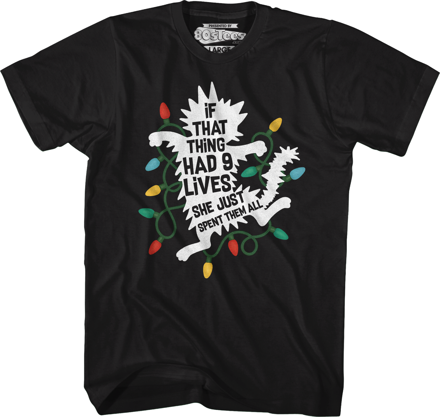 Christmas Vacation is one of the greatest holiday comedies of all time, and everyone will know you are a fan when you wear this 80sTees.com exclusive If That Thing Had 9 Lives She Just Spent Them All T-Shirt!