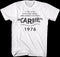 This Carrie t-shirt features taglines for the 1976 classic. The taglines include "If You've Got A Taste For Terror...Take Carrie To The Prom" and "If only they knew she had the power".