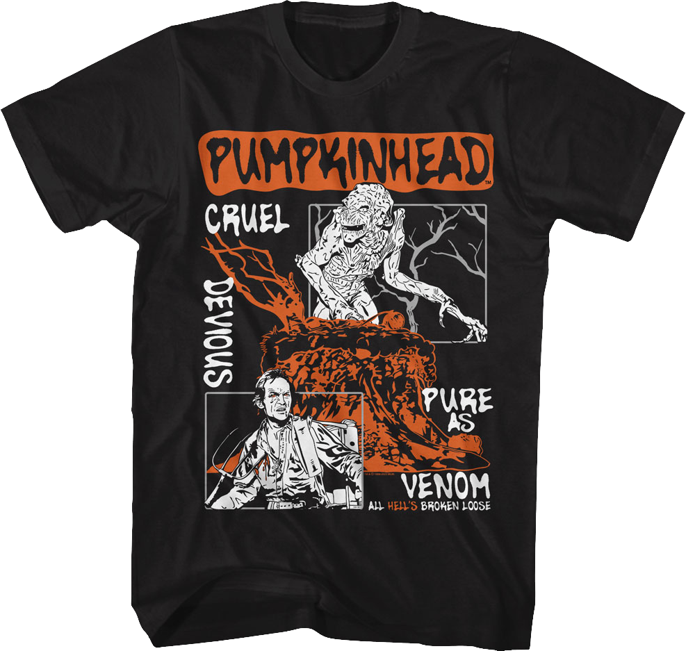 For any fan of the 1988 horror classic starring Lance Henriksen, this Illustrated Cruel Panels Pumpkinhead T-Shirt!