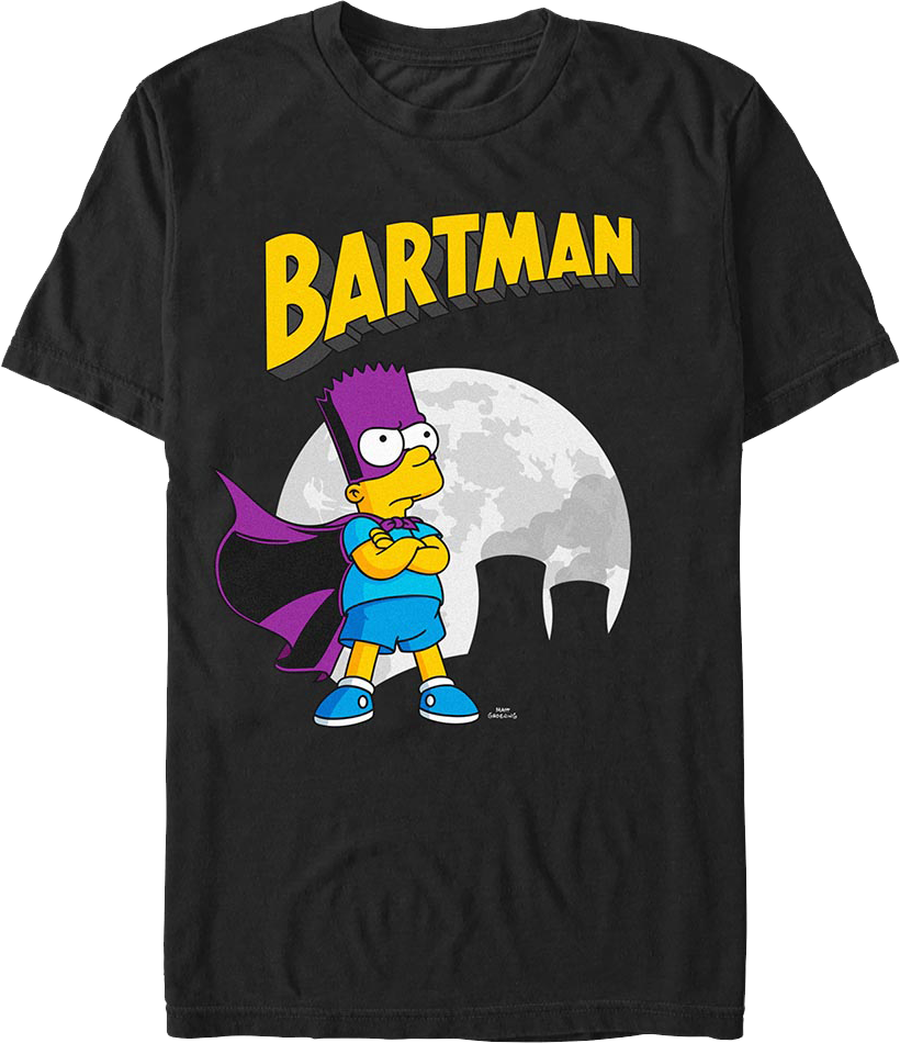 This Simpsons t-shirt shows Bartman posing under a full moon near the Springfield Nuclear Power Plant.