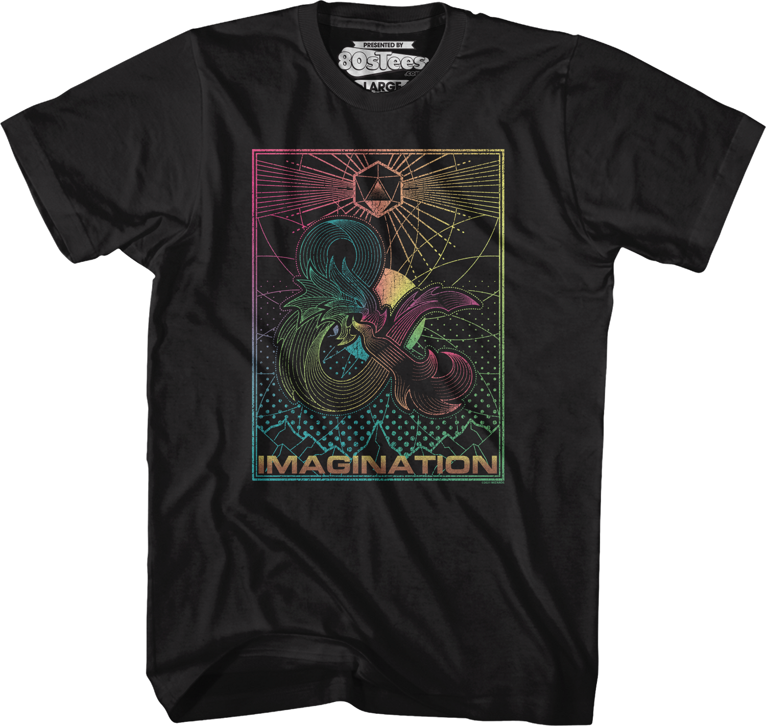 For any fan of the world's most popular role-playing game, this 80sTees.com exclusive Imagination Dungeons & Dragons T-Shirt is a must have!