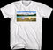 This Care Bears t-shirt shows Sweet Dreams Bear and Funshine Bear in a field with a scenic view of a lake and mountains.