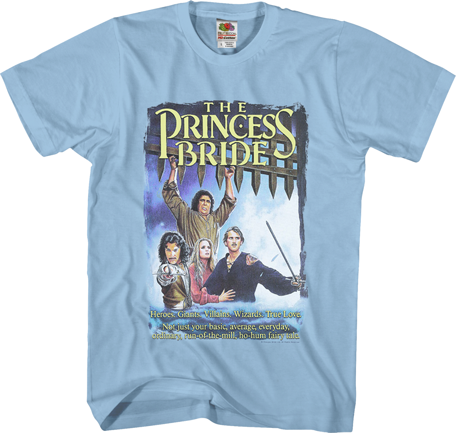This Princess Bride t-shirt features the poster that was used to promote the Vestron Video International distribution of the classic 1987 movie.