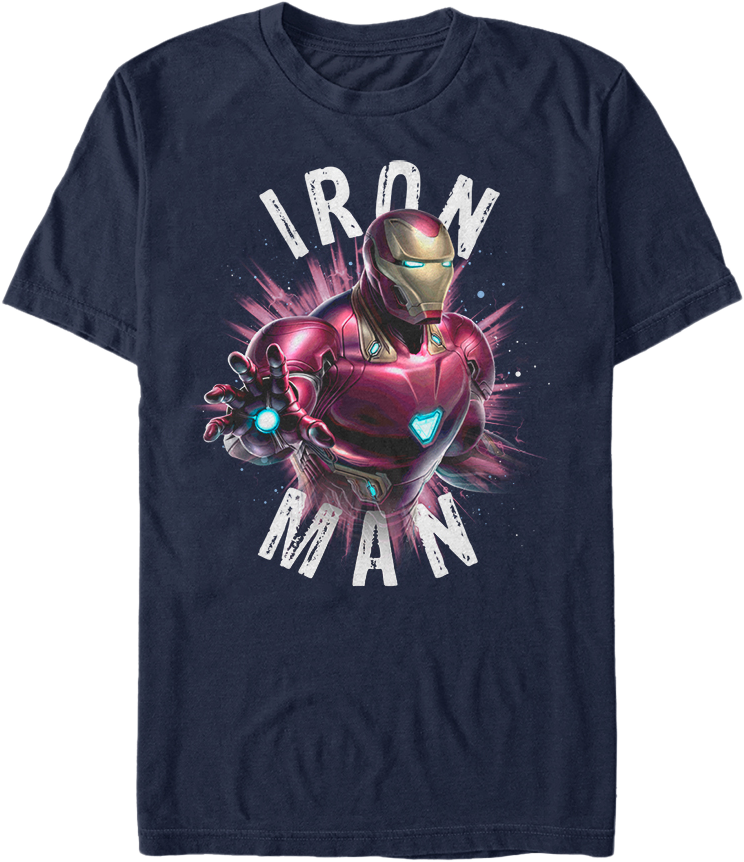 This Avengers: Endgame shirt features an image of Iron Man emerging from an intergalactic burst.