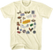 This Seinfeld t-shirt features icons representing some of the most popular episodes of the classic sitcom. The shirt includes Scrabble tiles that spell out "QUONE", Kramer's ASSMAN license plate, feats of strength, a speech bubble reading "Yada, Yada, Yada", Kramer as a tasty chicken, pretzels, a megaphone used for the airing of grievances, a "no tinsel" logo, ketchup and mustard in the same bottle, the Seinfeld logo, an urban sombrero, a box of cereal, a roll of toilet paper without a square to spare, toxic envelopes, a certificate for the Human Fund, ocean-scented perfume, a bottle of Bosco, George's baldness cream, a lobster from the Hamptons, an Anti-Dentite logo, weights to be lifted by the Mandelbaums, Kramer's chicken named Little Jerry, and a Vadelay Industries logo.
