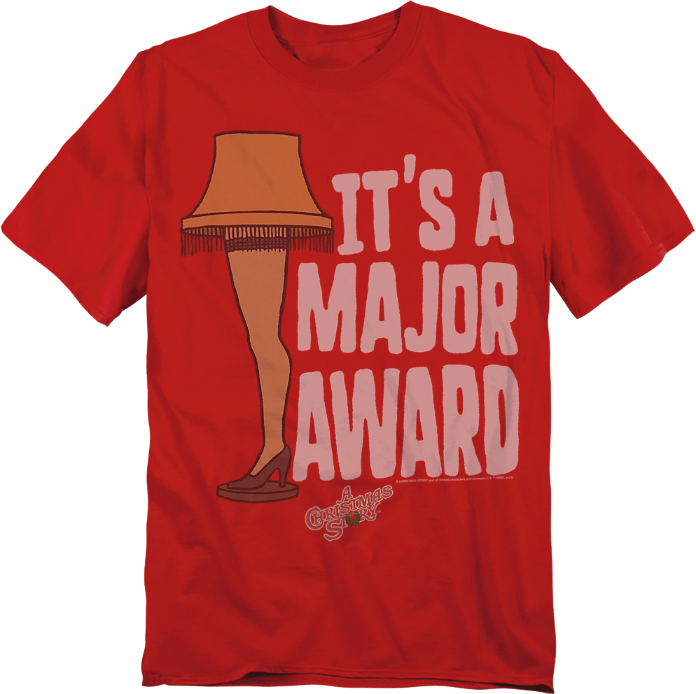 This Christmas Story t-shirt features an image of The Old Man's leg lamp. The shirt reads It's A Major Award.